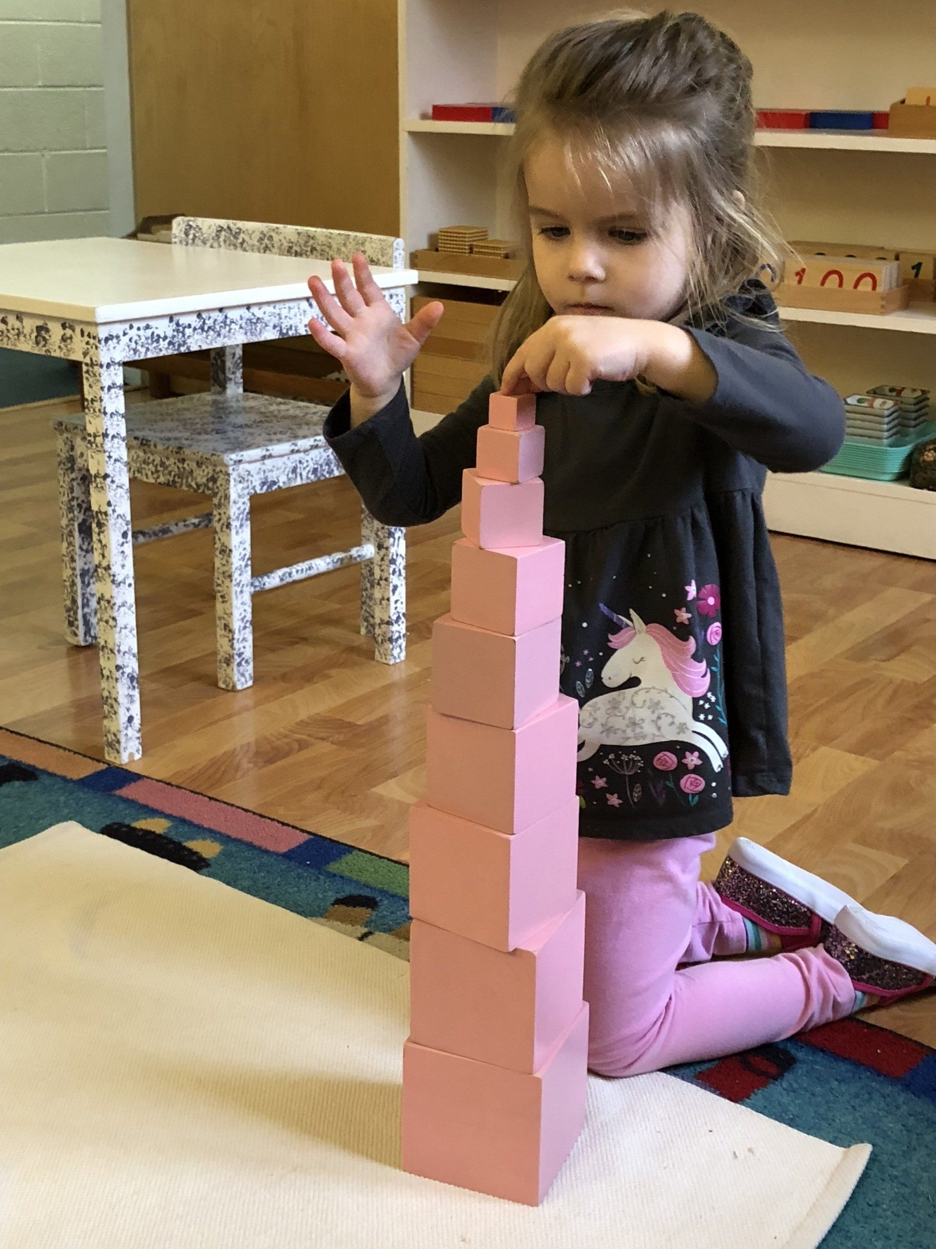 Sensorial exercises enable the child to compare, classify and clarify the world around them. Many of these materials are precursors to mathematics and geometry.